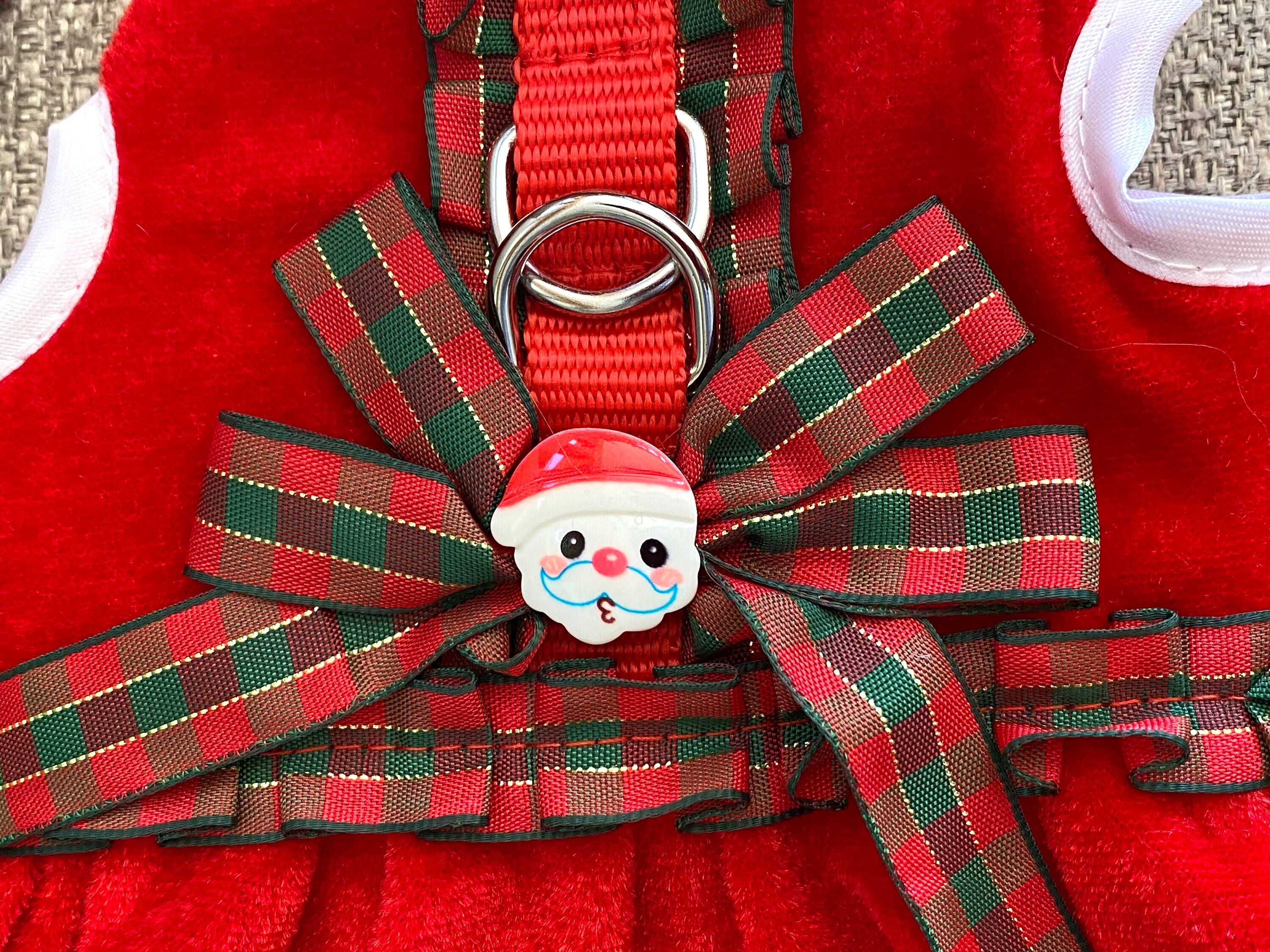 Christmas Plaid dog harness leash set, holiday Tartan dog harness vest